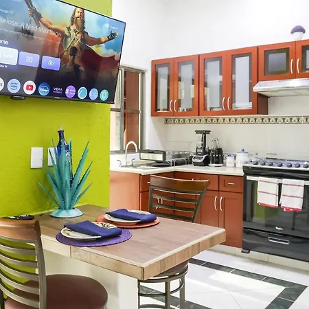 De woning biedt koffie- en theevoorzieningen, evenals een complete keuken met een magnetron, een broodrooster en keukengerei. Gasten zullen genieten van gerechten uit de Mexicaanse keuken, geserveerd in Guaranar Salón, dat op 5 minuten te voet vandaan ligt. Deze villa heeft een terras om op te ontspannen na een drukke dag, samen met een buitenzwembad.